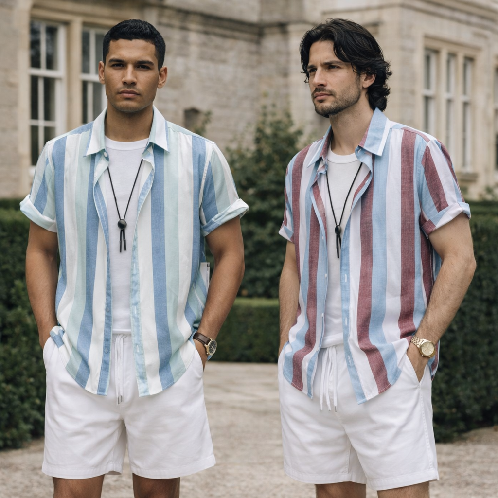 Men’s 2 Piece Summer Outfit – Striped Shirt and Shorts