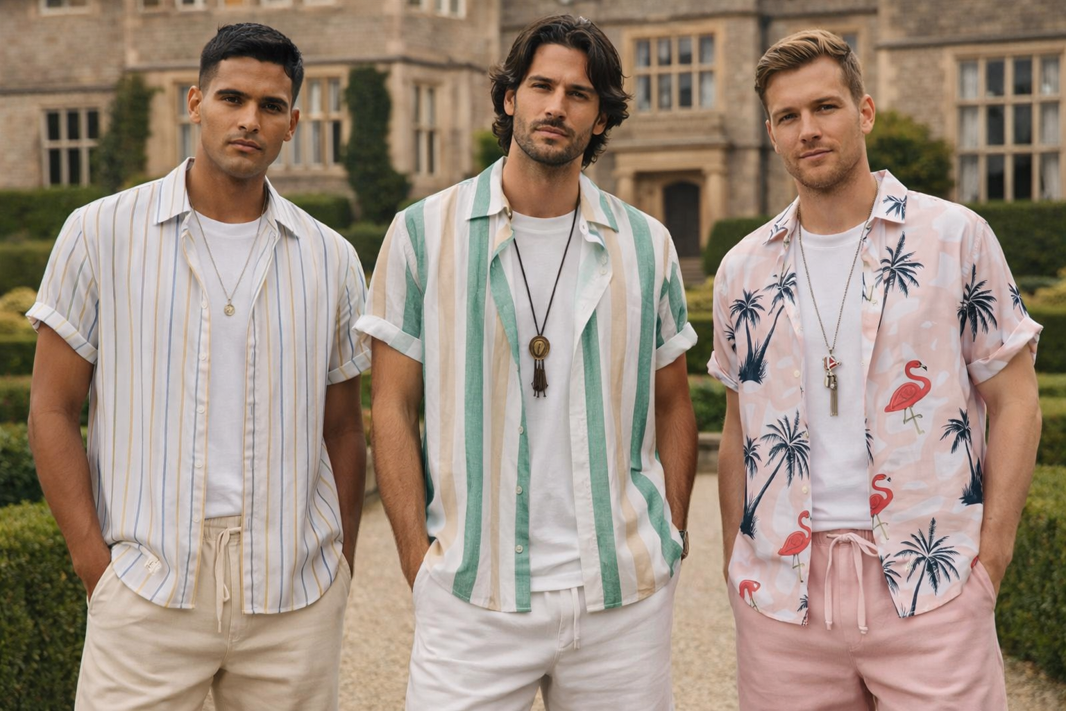 Men’s 2 Piece Summer Outfit – Printed Shirt and Shorts