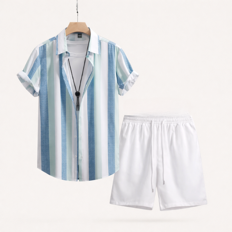Men’s 2 Piece Summer Outfit – Striped Shirt and Shorts